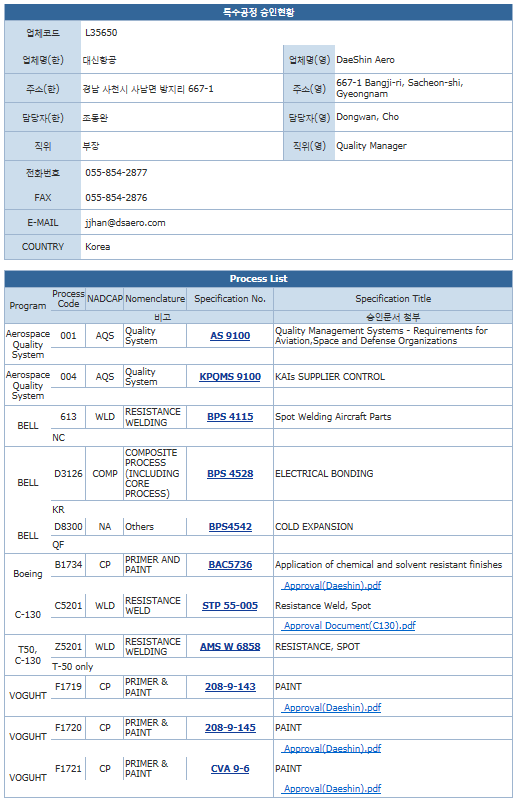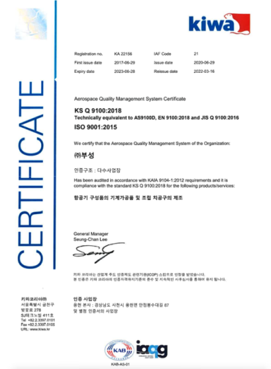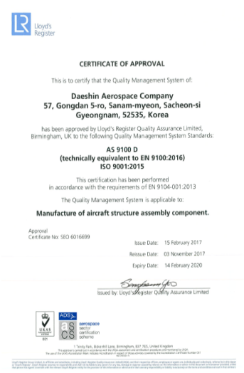 항공기 사업분야의 국제 품질기준인 KS Q 9100 System을 기반으로,